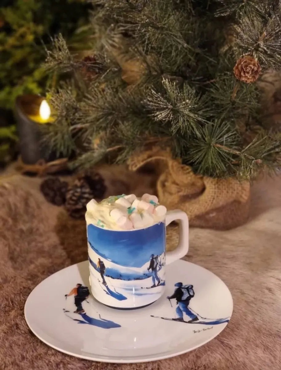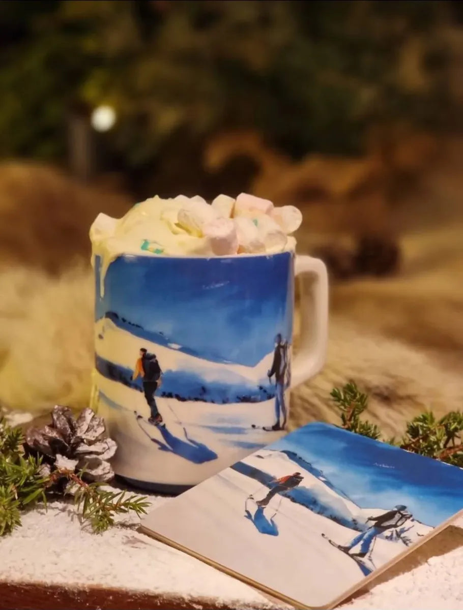 Nyt en varm drikke i dette stilrene kruset med motivet Oppover fra serien Fjellet kaller. Motivet Oppover er malt i vakre akvarellfarger og viser en gruppe skigåere på topptur opp et snøkledd, norsk fjelltopp. Dette er en perfekt kopp for de som elsker ski, alpint, randonee og topptur.