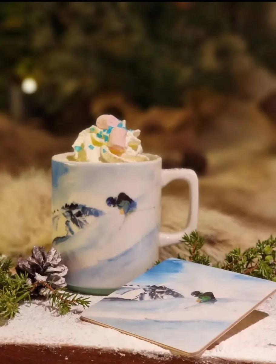 Nyt en varm drikke i dette stilrene kruset med motivet Nedover fra serien Fjellet kaller. Motivet Nedover er malt i vakre akvarellfarger og viser en slalåmkjører på vei ned fra en snøkledd, norsk fjelltopp. Dette er en perfekt kopp for de som elsker ski, alpint, randonee og topptur.