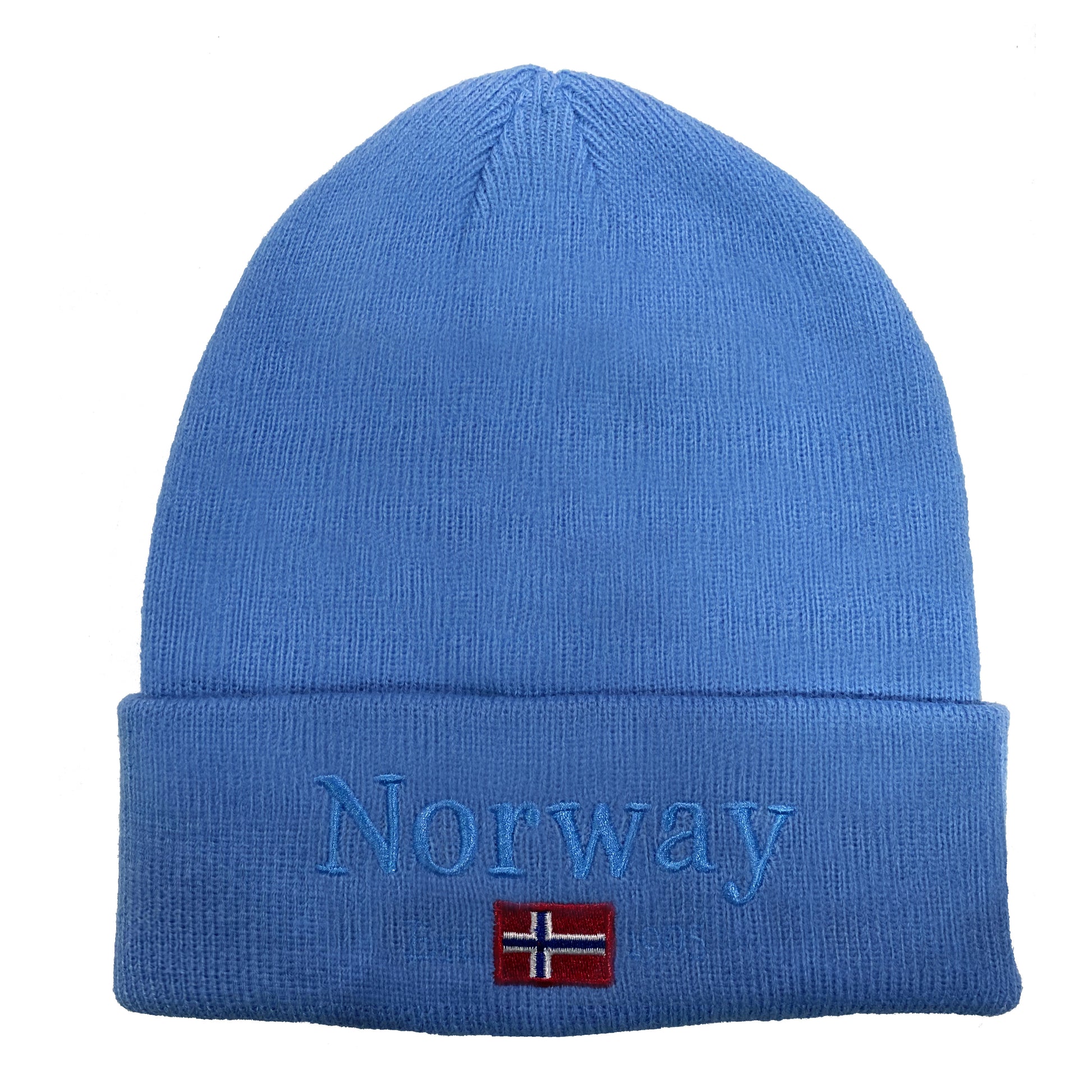 Strikkelue, lys blå, Norway Est 1905
