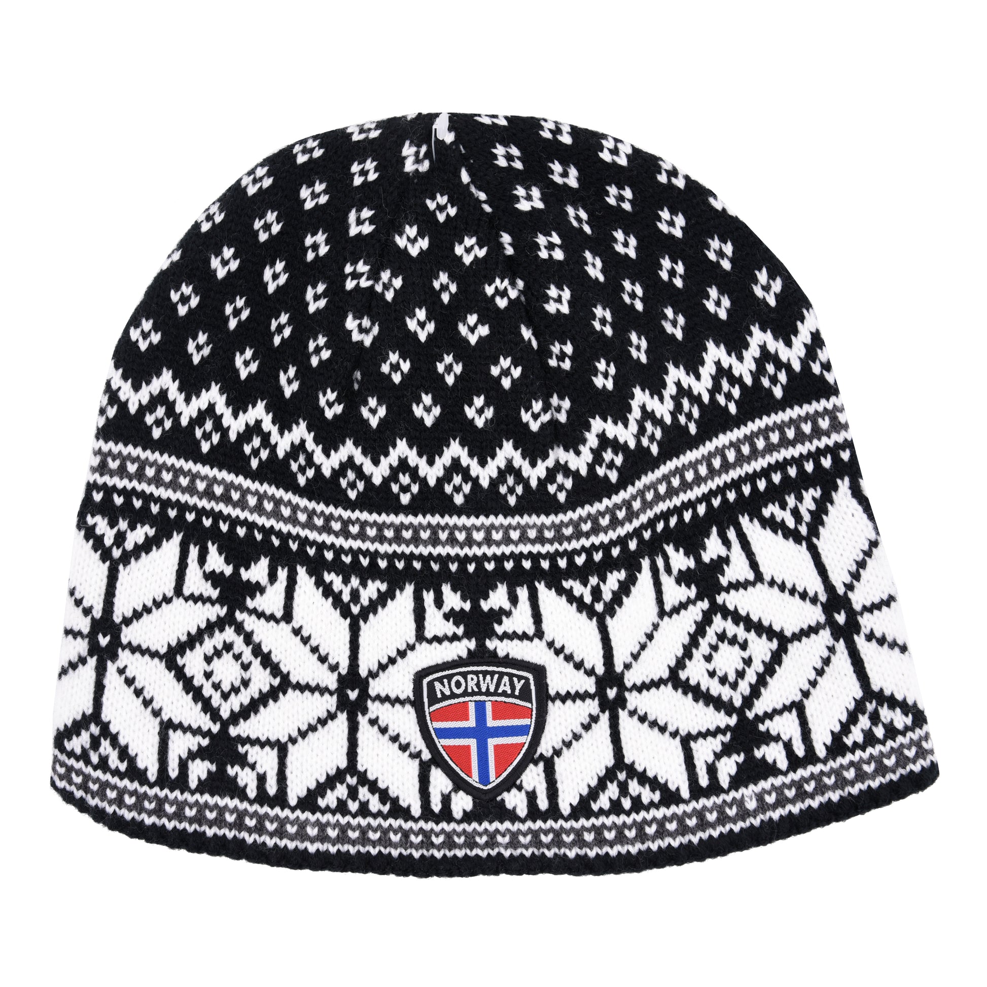 Strikkelue, svart m/hvite stjerner