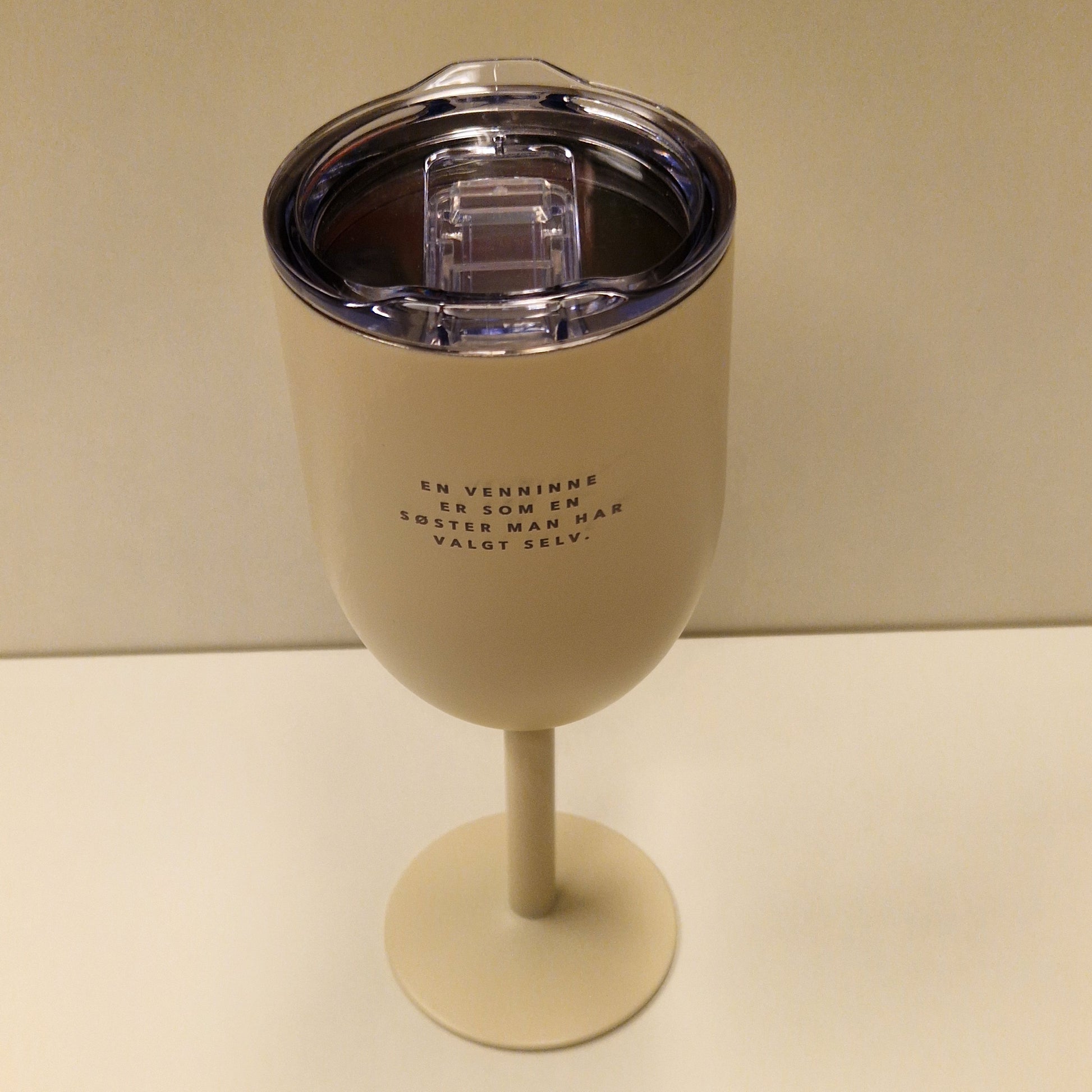 Matt hvit termo vinglass fra Pictureit til en venninne, med den koselige teksten: